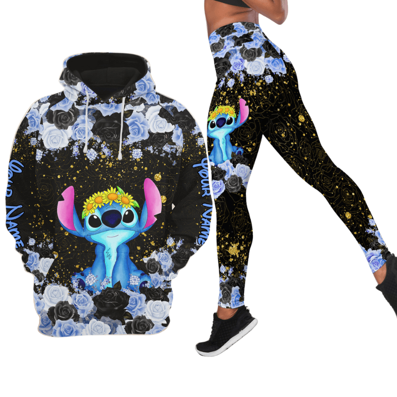 Custom Name Stitch Pattern Themed Hoodie And Leggings Set