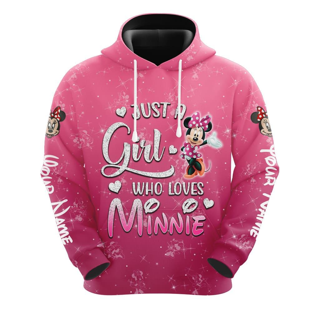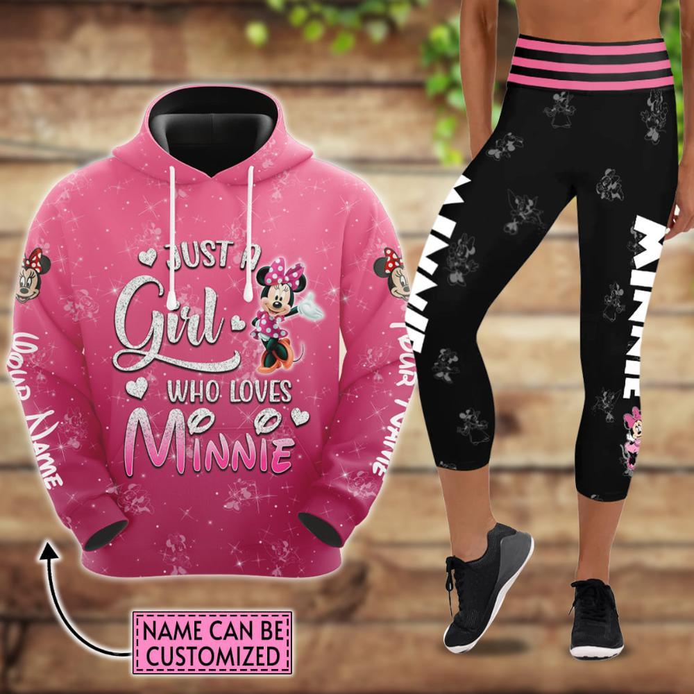 Custom Name Just A Girl Minnie Mouse Hoodie And Capris Leggings Set