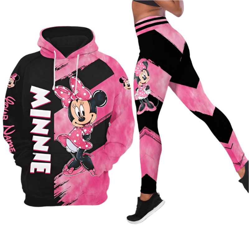 Personalized Name Minnie Pattern Hoodie And Leggings Set