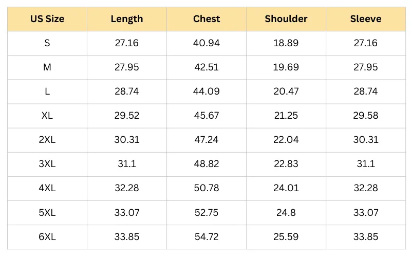 Size Chart (Inches):