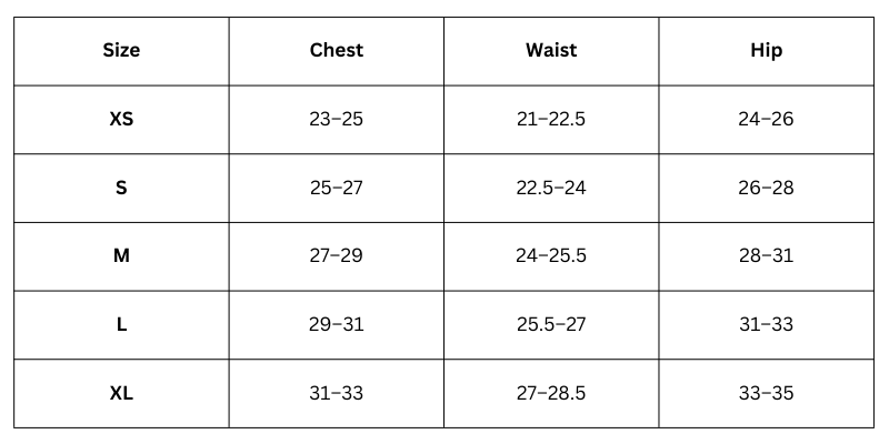 Size Chart(inch):