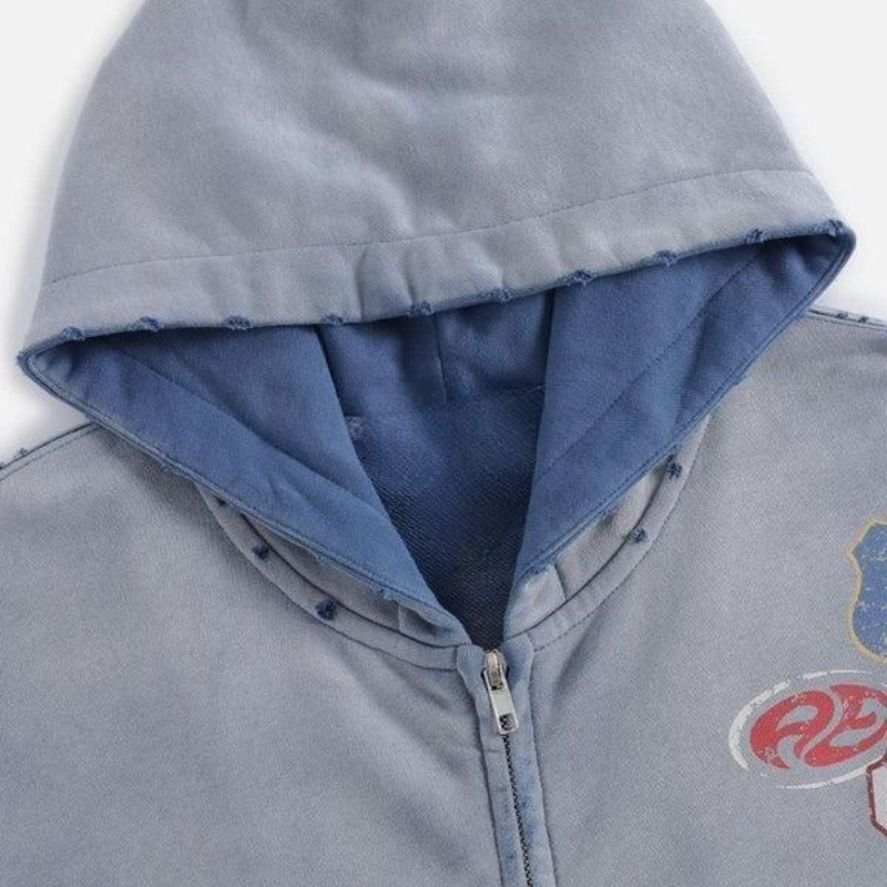 Oversized Boxy Zip Up Hoodie With Embellished Vintage Badges stands out through purposeful details like vintage badges and garment-dyed wash that typical mass hoodies lack. The oversized silhouette flatters without clinging, while full-zip versatility beats pullover styles for temperature control. Distinctive patches create personal style markers, turning basic layering into curated looks. Soft pre-washed fabric skips the stiff new-clothing phase entirely.