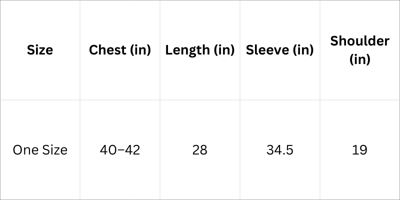 Size Chart (inches):