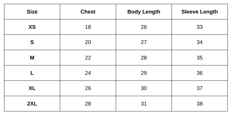 - Fit type: Standard sizing (refer to size chart for measurements)