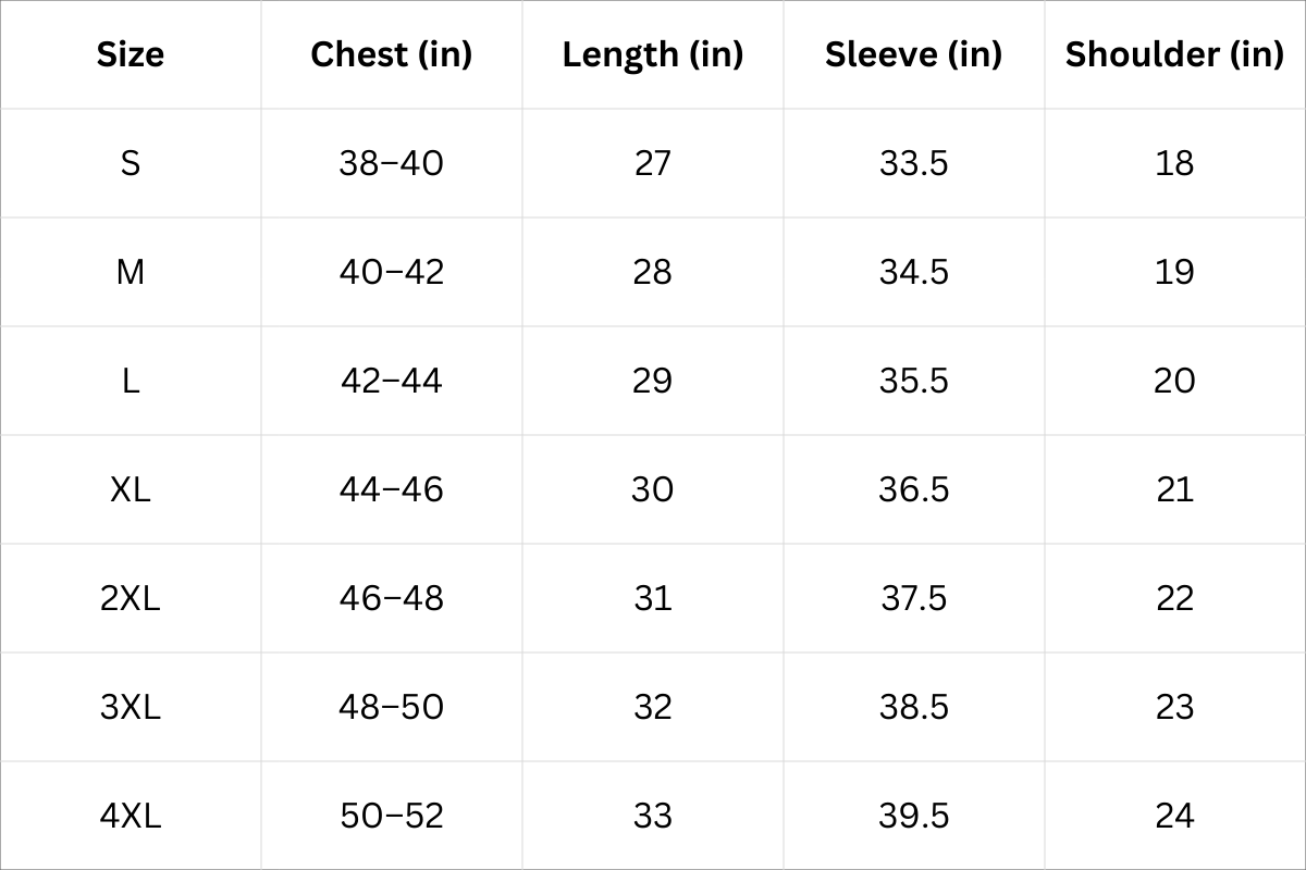 Size Chart (Inches):